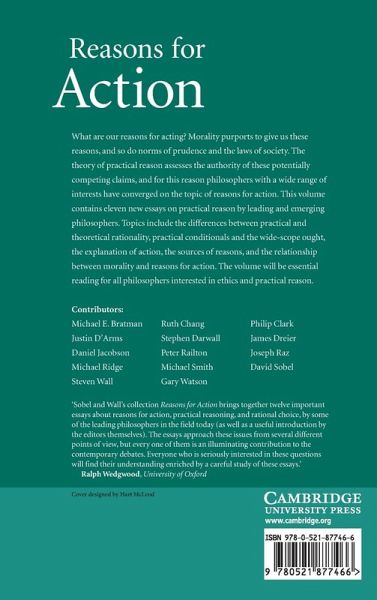 This volume contains eleven essays on practical reason. Topics include the differences between practical and theoretical rationality, the explanation of action, the sources of reasons, and the relationship between morality and reasons for action. The volume will be essential reading for all philosophers interested in ethics and practical reason.