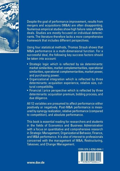 Despite the goal of performance improvement, results from mergers and acquisitions (M&A) are often disappointing. Numerous empirical studies show high failure rates of M&A deals. Studies are mostly focused on individual determinants. The literature therefore lacks a more comprehensive framework that includes different perspectives.