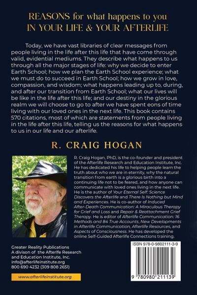 Today, we have vast libraries of clear messages from people living in the life after this life that have come through valid, evidential mediums. They describe what happens to us through all the major stages of life: why we decide to enter Earth School; how we plan the Earth School experience; what we must do to succeed in Earth School; how we grow in love, compassion, and wisdom; what happens leading up to, during, and after our transition from Earth School; what our lives will be like in the life after this life; and our destiny in the glorious realm we will choose to go to after we have spent eons of time living with our loved ones in the next life. This book contains 570 citations, most of which are statements from people living in the life after this life, telling us the reasons for what happens to us in our life and our afterlife. This book explains why we have chosen the life we are living, what our purpose is in this life, how we can live in love, peace, and joy, what happens at the transition from this life, and what life is like in the realm we all enter after leaving earth.