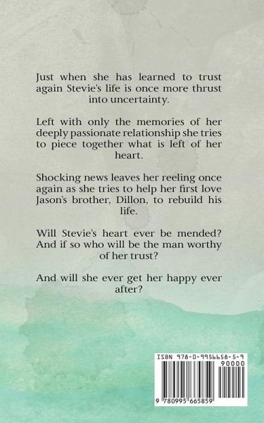 Just when she has learned to trust again Stevie's life is once more thrust into uncertainty. Left with only the memories of her deeply passionate relationship she tries to piece together what is left of her heart. Shocking news leaves her reeling once again as she tries to help her first love Jason's brother, Dillon, to rebuild his life. Will Stevie's heart ever be mended? And if so who will be the man worthy of her trust? And will she ever get her happy ever after?