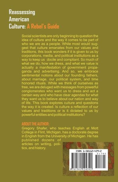 Social scientists are only beginning to question the idea of culture and the way it comes to be part of who we are as a people. While most would suggest that culture emanates from our values and traditions, this book wonders if it is given to us by corporations, media, and political institutions as a way to keep us docile and compliant. So much of what we do, how we dress, and what we value is actually a manifestation of government propaganda and advertsing. And so, we embrace sentimental notions about our founding fathers, about marriage, our political system, and time honored rituals. While we think of ourselves as free, we are deluged with messages from powerful conglomerates who want us to dress and act a certain way and who have clear agendas for what they want us to believe about our nation and way of life. This book explores culture and questions the way it is created. Is culture a reflection of our values and traditions or is it dictated to us by powerful entities and political institutions?