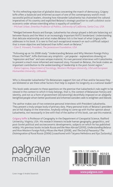 'In this refreshing rejection of globalist doxa concerning the march of democracy, Grigory Ioffe offers a balanced and informed account of one of the contemporary world's most successful political leaders, showing how Alexander Lukashenka has channeled the cultural imperatives of his countryand exploited Belarus's strategic position to craft a distinct socio-economic order whose overriding ethos is equality of condition'. - Michael Urban, Emeritus Professor of Politics, University of California, Santa Cruz, USA