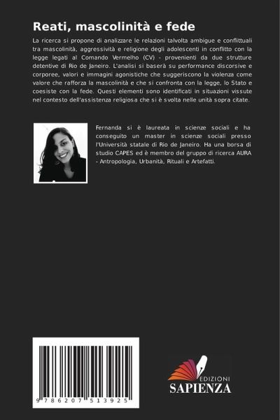 La ricerca si propone di analizzare le relazioni talvolta ambigue e conflittuali tra mascolinità, aggressività e religione degli adolescenti in conflitto con la legge legati al Comando Vermelho (CV) - provenienti da due strutture detentive di Rio de Janeiro. L'analisi si baserà su performance discorsive e corporee, valori e immagini agonistiche che suggeriscono la violenza come valore che rafforza la mascolinità e che si confronta con la legge, lo Stato e coesiste con la fede. Questi elementi sono identificati in situazioni vissute nel contesto dell'assistenza religiosa che si è svolta nelle unità sopra citate.