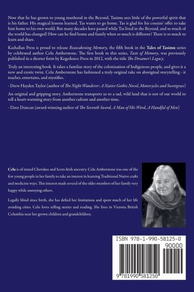 Now that he has grown to young manhood in the Beyond, Tasimu sees little of the powerful spirit that is his father. His magical lessons learned, Tas wants to go home. Tas is glad for his cousins' offer to take him home to his own world. But many decades have passed while Tas lived in the Beyond, and so much of the world has changed! How can he find home and family when so much is different? There is so much to learn and share. Kashallan Press is proud to release Reawakening Memory, the fifth book in the Tales of Tasimu series by celebrated author Celu Amberstone. The first book in this series, Taste of Memory, was previously published in a shorter form by Kegedonce Press in 2012, with the title The Dreamer's Legacy. Truly an interesting book. It takes a familiar story of the colonization of Indigenous people, and gives it a new and exotic twist. Celu Amberstone has fashioned a truly original take on aboriginal storytelling - it teaches, entertains, and mystifies. - Drew Hayden Taylor (author of The Night Wanderer: A Native Gothic Novel, Motorcycles and Sweetgrass) This chronicle of an expulsion and forced migration of a peaceful nation by colonists, set in an alternate world. Narrated by a young boy of the tribe who discovers injustice, and his own filiation. A heartfelt story with a touch of spiritual. (Loosely inspired by the true history of the Cherokee nation, "legally" chased from their ancestral lands.) Ecrit avant la publication de The Way of Thorn and Thunder de D H justice, me rappelle ce dernier livre pour l'inventivité et l'intrigue qui se déroule sur un monde secondaire. Les deux romans reprennent des thèmes autochtones en fantasy, puisque une première nation locale est chassée de son territoire et un adolescent révolté découvre sa filiation spirituelle. -Michèle Laframboise (author of Mistress of the Winds) An original and gripping story. Amberstone transports us to a sad, wild land that is not of our world to tell a heart-warming story from another culture and another time. - Dave Duncan (award-winning author of The Seventh Sword, A Man of His Word , A Handful of Men)