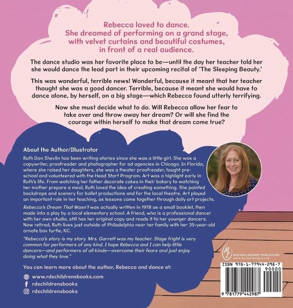Rebecca loved to dance. She dreamed of performing on a grand stage, with velvet curtains and beautiful costumes, in front of a real audience. The dance studio was her favorite place to be-until the day her teacher told her she would dance the lead part in their upcoming recital of 'The Sleeping Beauty.' This was wonderful, terrible news! Wonderful, because it meant that her teacher thought she was a good dancer. Terrible, because it meant she would have to dance alone, by herself, on a big stage-which Rebecca found utterly terrifying. Now she must decide what to do. Will Rebecca allow her fear to take over and throw away her dream? Or will she find the courage within herself to make that dream come true?