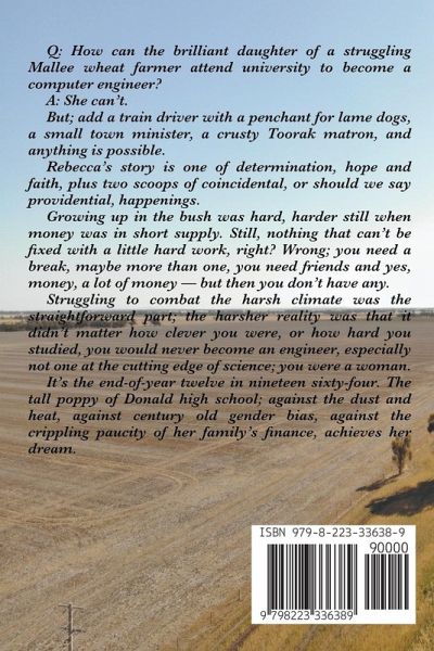 In nineteen sixty-four, if you didn't have money, lots of money, university was not for you. If you were the daughter of a struggling wheat farmer then things just went from bad to worse. The bitter truth was that it mattered not you were a brilliant student, you are a girl and girls just don't get to be engineers, especially not at the cutting edge of the scientific world.