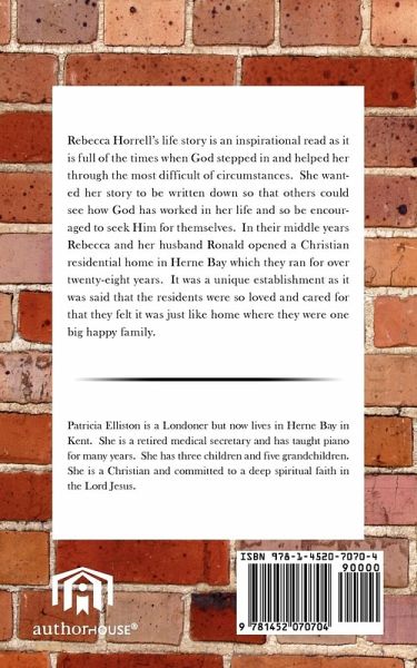 Rebecca Horrell's life story is an inspirational read as it is full of the times when God stepped in and helped her through the most difficult of circumstances. She wanted her story to be written down so that others could see how God has worked in her life and so be encouraged to seek Him for themselves. In their middle years Rebecca and her husband Ronald opened a Christian residential home in Herne Bay which they ran for over twenty-eight years. It was a unique establishment as it was said that the residents were so loved and cared for that they felt it was just like home where they were one big happy family.
