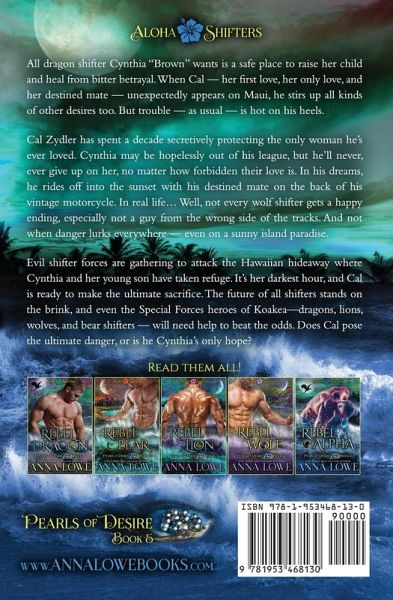 Dragon heiress and her bad boy wolf shifter get a second chance at forbidden love. Is it too late? *** Voted a FAVORITE SERIES OF 2018 by PNR Lovers! *** All dragon shifter Cynthia "Brown" wants is a safe place to raise her child and heal from bitter betrayal. When Cal - her first love, her only love, and her destined mate - unexpectedly appears on Maui, he stirs up all kinds of other desires too. But trouble - as usual - is hot on his heels. Cal Zydler has spent a decade secretively protecting the only woman he's ever loved. Cynthia may be hopelessly out of his league, but he'll never, ever give up on her, no matter how forbidden their love is. In his dreams, he rides off into the sunset with his destined mate on the back of his vintage motorcycle. In real life... Well, not every wolf shifter gets a happy ending, especially not a guy from the wrong side of the tracks. And not when danger lurks everywhere - even on a sunny island paradise. Evil shifter forces are gathering to attack the Hawaiian hideaway where Cynthia and her young son have taken refuge. It's her darkest hour, and Cal is ready to make the ultimate sacrifice. The future of all shifters stands on the brink, and even the Special Forces heroes of Koakea - dragons, lions, wolves, and bear shifters - will need help to beat the odds. Does Cal pose the ultimate danger, or is he Cynthia's only hope? Maui just got hotter with this exciting new series of steamy, suspenseful paranormal romance! ALOHA SHIFTERS: PEARLS OF DESIRE is a series of sizzling paranormal romances with adult content. No cliff hangers. Each story is a page-turner packed with action, emotion, and romance! If you like Magnum, PI and smoldering hot, alpha shapeshifters you'll love these books. Join these strong heroines and their alpha heroes in exotic, tropical locales full of danger & suspense!
