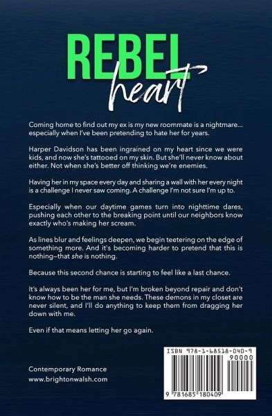 Coming home to find out my ex is my new roommate is a nightmare...especially when I've been pretending to hate her for years. Harper Davidson has been ingrained on my heart since we were kids, and now she's tattooed on my skin. But she'll never know about either. Not when she's better off thinking we're enemies. Having her in my space every day and sharing a wall with her every night is a challenge I never saw coming. A challenge I'm not sure I'm up to. Especially when our daytime games turn into nighttime dares, pushing each other to the breaking point until our neighbors know exactly who's making her scream. As lines blur and feelings deepen, we begin teetering on the edge of something more. And it's becoming harder to pretend that this is nothing-that she is nothing. Because this second chance is starting to feel like a last chance. It's always been her for me, but I'm broken beyond repair and don't know how to be the man she needs. These demons in my closet are never silent, and I'll do anything to keep them from dragging her down with me. Even if that means letting her go again.