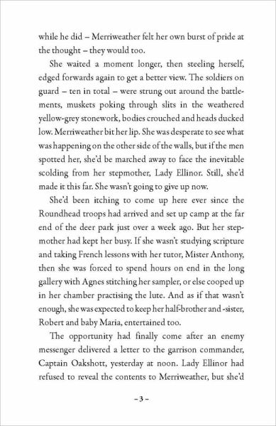 England, 1645. Merriweather Pryce is the daughter of a nobleman fightingfor King Charles I in a war that divides the country. Whenher family home is besieged by Cromwell's army, Merri sets outto get help. But in a land filled with enemy soldiers, turncoatsand spies, who can she really trust?