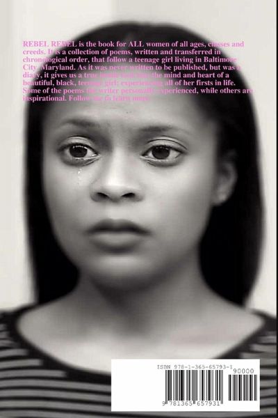 REBEL REBEL is the book for ALL women of all ages and creeds. It is a collaboration of poems, written and transferred in chronological order, that follow a teenage girl living in Baltimore City, Maryland. As it was never written to be published, but was a diary, it gives us a true inside look into the mind and heart of a beautiful, black, teenage girl; experiencing all of her firsts in life. Some of the poems the writer personally experienced, while others are inspirational. Follow me to learn more.