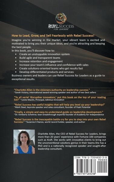 How to Lead, Grow, and Sell Fearlessly with Rebel Success! "Those who push boundaries are certainly those who lead the leaders. And this HOW is as unique as the points of a snowflake, no two ever being exactly alike." --Dr. Cheryl Lentz, The Academic Entrepreneur Imagine you're winning in the market, your vibrant team is excited and motivated to bring you their unique ideas, and you're attracting and keeping the best people. In this book, you'll discover how to:Create an unstoppable innovation system Build agile and transparent teams Increase retention and engagement Increase your team's influence and confidence with sales Create solutions-oriented teams who get results fast Develop differentiated products and services Harness the power of the unconventional to achieve exceptional results. A powerful book that gives you the keys to unlock the Inner Rebel. Bring out the genius solutions in your team, your organization, and even yourself. The tools will fast-track your teams to transparent and agile performance as they excel at creating those new and differentiated ideas. Overcome the common challenges with innovation and create a blueprint to market that works for your company. You'll find the secrets to be a magnet for truly extraordinary people and how to retain the best and brightest. Connecting the company mission to the passions of your people will bring out an unstoppable sense of value in each person. Align culture, activate creativity, and cultivate genius. Business owners and leaders can use Rebel Success for Leaders as a guide to exceptional results. Your team will fearlessly lead you to success!