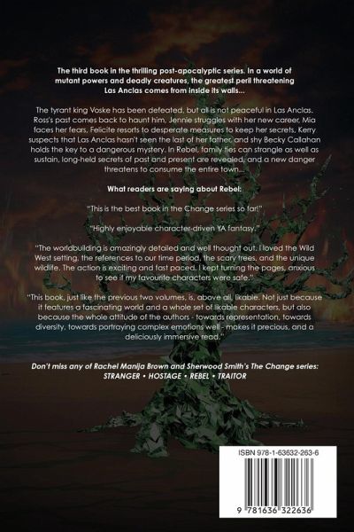 REBEL is the third book in the thrilling post-apocalyptic series. In a world of mutant powers and deadly creatures, the greatest peril threatening Las Anclas comes from inside its walls... The tyrant king Voske has been defeated, but all is not peaceful in Las Anclas. Ross's past comes back to haunt him, Jennie struggles with her new career, Mia faces her fears, Felicite resorts to desperate measures to keep her secrets, Kerry suspects that Las Anclas hasn't seen the last of her father, and shy Becky Callahan holds the key to a dangerous mystery. In Rebel, family ties can strangle as well as sustain, long-held secrets of past and present are revealed, and a new danger threatens to consume the entire town...