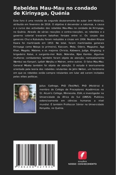 Este livro é uma revisão do segundo doutoramento do autor (em História), atribuído em fevereiro de 2016. O objetivo é desvendar a natureza, a causa e o curso das actividades dos rebeldes Mau-Mau no condado de Kirinyaga, no Quénia. Através de várias reacções e contra-reacções, os rebeldes e o governo colonial travaram batalhas ferozes entre si. Os corpos dos generais Chui e Kubukubu foram reduzidos a cinzas em 1956. Reuben Kinyua Kaara foi martirizado em 1953. No total, foram martirizados generais Kirinyaga como Ndaya (o primeiro), Kassam, Mota, Odero, Magazine, Aga Khan, Magoto, Matene; e os majores Christo, Kabwere, Judge, Kingkong; o brigadeiro Kubai, o sargento-mor Nubi, Ndereba, Njee Kambo. Algumas mulheres combatentes também foram objeto de atenção, nomeadamente Wambui wa KanyarI, Lydiah Wanjiku e Matron, entre outras. O falso Mau-Mau General Mbaka também foi objeto de atenção. O estudo é teoricamente orientado pela teoria dos rebeldes relutantes de John Walton, um fenómeno em que os rebeldes estão sempre relutantes em lutar até serem incitados pelas elites políticas.