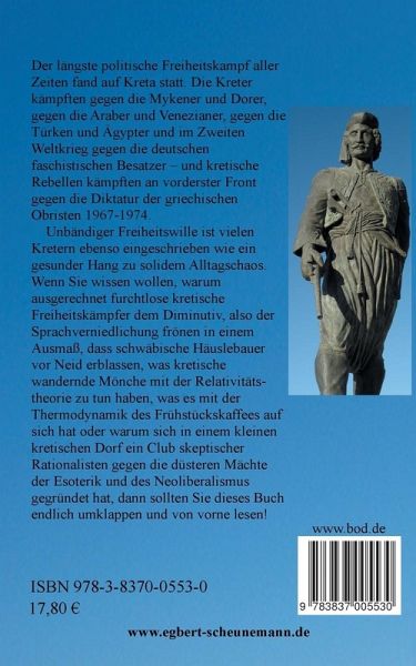 Der längste politische Freiheitskampf aller Zeiten fand auf Kreta statt. Die Kreter kämpften gegen die Mykener und Dorer, gegen die Araber und Venezianer, gegen die Türken und Ägypter und im Zweiten Weltkrieg gegen die deutschen faschistischen Besatzer - und kretische Rebellen kämpften an vorderster Front gegen die Diktatur der griechischen Obristen 1967-1974.Unbändiger Freiheitswille ist vielen Kretern ebenso eingeschrieben wie ein gesunder Hang zu solidem Alltagschaos. Wenn Sie wissen wollen, warum ausgerechnet furchtlose kretische Freiheitskämpfer dem Diminutiv, also der Sprachverniedlichung frönen in einem Ausmaß, dass schwäbische Häuslebauer vor Neid erblassen, was kretische wandernde Mönche mit der Relativitätstheorie zu tun haben, was es mit der Thermodynamik des Frühstückskaffees auf sich hat oder warum sich in einem kleinen kretischen Dorf ein Club skeptischer Rationalisten gegen die düsteren Mächte der Esoterik und des Neoliberalismus gegründet hat - dann sollten Sie dieses Buch endlich kaufen und lesen!
