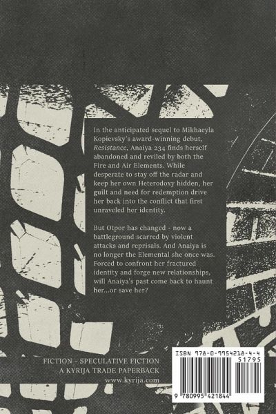The sky over the Edges shimmers then falters. Hovering between night and day, the dawn has come and trapped it between two very different realities - blurring it at the fringes until it becomes impossible to tell whether it is in one state or the other. Maybe both, maybe neither. Maybe something altogether different. In the anticipated sequel to Mikhaeyla Kopievsky's award-winning debut, Resistance, Anaiya 234 finds herself abandoned and reviled by both the Fire and Air Elements. While desperate to stay off the radar and keep her own Heterodoxy hidden, her guilt and need for redemption drive her back into the conflict that first unraveled her identity. But Otpor has changed - now a battleground scarred by violent attacks and reprisals. And Anaiya is no longer the Elemental she once was. Forced to confront her fractured identity and forge new relationships, will Anaiya's past come back to haunt her...or save her?