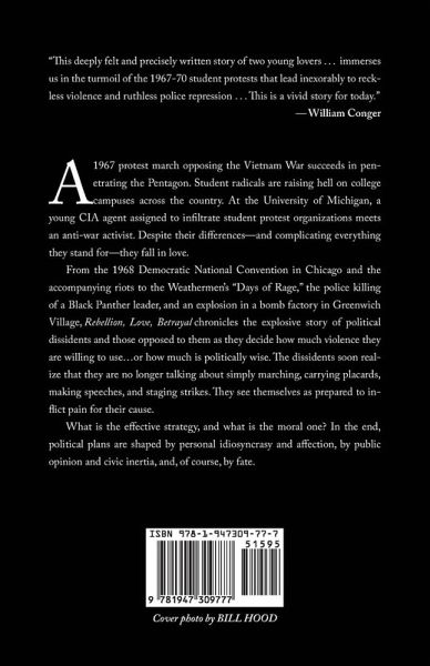 A 1967 protest march opposing the Vietnam War succeeds in penetrating the Pentagon. Student radicals are raising hell on college campuses across the country. At the University of Michigan, a young CIA agent assigned to infiltrate student protest organizations meets an anti-war activist. Inexplicably—and complicating everything they stand for—they fall in love. From the 1968 Democratic National Convention in Chicago and the accompanying riots, to the Weathermen's "Days of Rage," the police killing of a Black Panther leader, and an explosion in a bomb factory in Greenwich Village, Rebellion, Love, Betrayal chronicles the explosive story of political dissidents and those opposed to them as they decide how much violence they are willing to use…or how much is politically wise. The dissidents soon realize that they are no longer talking about simply marching, carrying placards, making speeches, and staging strikes. They see themselves as prepared to inflict pain for their cause.