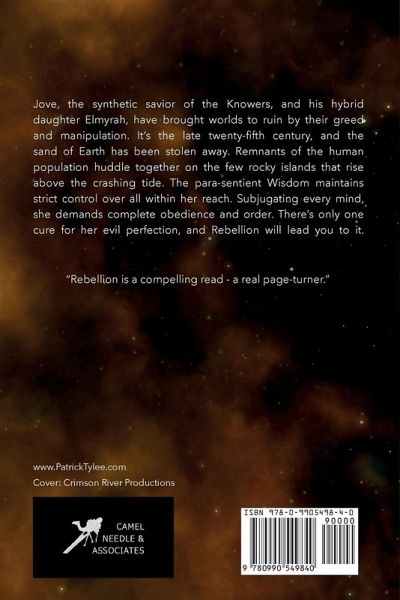 Jove, the synthetic savior of the Knowers, and his hybrid daughter Elmyrah, have brought worlds to ruin by their greed and manipulation. It's the late twenty-fifth century, and the sand of Earth has been stolen away. Remnants of the human population huddle together on the few rocky islands that rise above the crashing tide. The para-sentient Wisdom maintains strict control over all within her reach. Subjugating every mind, she demands complete obedience and order. There's only one cure for her evil perfection, and Rebellion will lead you to it. "Rebellion is a compelling read - a real page-turner."