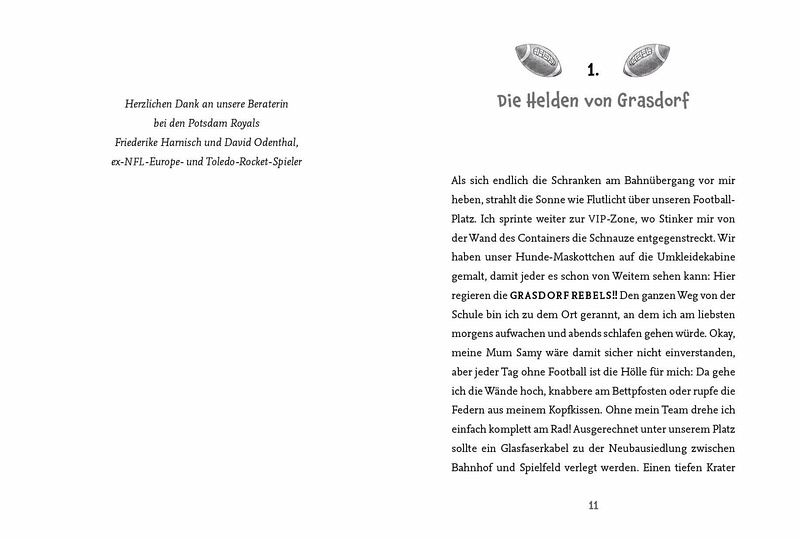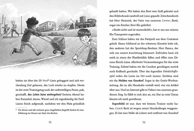 Natürlich begeistert das Buch auch wieder mit viel Football Know-How und einem spannenden Spiel. Wer sich nicht auskennt? Kein Problem. Alle wichtigen Begriffe aus der Welt des Footballs sind etwas dunkler eingefärbt und am Ende des Buches in einem Glossar erklärt - man wird also nicht im Regen stehen gelassen.