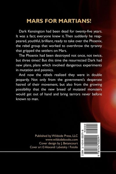 Dark Kensington had been dead for twenty-five years. It was a fact; everyone knew it. Then suddenly he reappeared, youthful, brilliant, ready to take over the Phoenix, the rebel group that worked to overthrow the tyranny that gripped the settlers on Mars. The Phoenix had been destroyed not once, not twice, but three times! But this time the resurrected Dark had new plans, plans which involved dangerous experiments in mutation and psionics. And now the rebels realized they were in double jeopardy. Not only from the government's desperate hatred of their movement, but also from the growing possibility that the new breed of mutated monsters would get out of hand and bring terrors never before known to man.