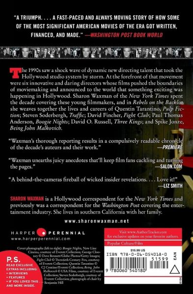 The 1990s saw a shock wave of dynamic new directing talent that took the Hollywood studio system by storm. At the forefront of that movement were six innovative and daring directors whose films pushed the boundaries of moviemaking and announced to the world that something exciting was happening in Hollywood. Sharon Waxman of the New York Times spent the decade covering these young filmmakers, and in Rebels on the Backlot she weaves together the lives and careers of Quentin Tarantino, Pulp Fiction; Steven Soderbergh, Traffic; David Fincher, Fight Club; Paul Thomas Anderson, Boogie Nights; David O. Russell, Three Kings; and Spike Jonze, Being John Malkovich.