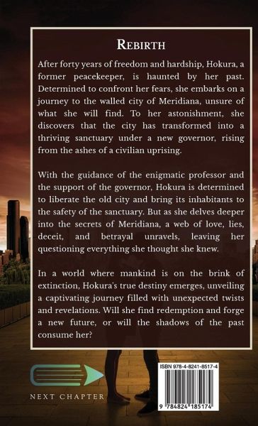 After forty years of freedom and hardship, Hokura, a former peacekeeper, is haunted by her past. Determined to confront her fears, she embarks on a journey to the walled city of Meridiana, unsure of what she will find. To her astonishment, she discovers that the city has transformed into a thriving sanctuary under a new governor, rising from the ashes of a civilian uprising. With the guidance of the enigmatic professor and the support of the governor, Hokura is determined to liberate the old city and bring its inhabitants to the safety of the sanctuary. But as she delves deeper into the secrets of Meridiana, a web of love, lies, deceit, and betrayal unravels, leaving her questioning everything she thought she knew. In a world where mankind is on the brink of extinction, Hokura's true destiny emerges, unveiling a captivating journey filled with unexpected twists and revelations. Will she find redemption and forge a new future, or will the shadows of the past consume her?