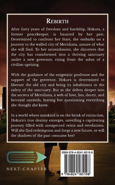 After forty years of freedom and hardship, Hokura, a former peacekeeper, is haunted by her past. Determined to confront her fears, she embarks on a journey to the walled city of Meridiana, unsure of what she will find. To her astonishment, she discovers that the city has transformed into a thriving sanctuary under a new governor, rising from the ashes of a civilian uprising. With the guidance of the enigmatic professor and the support of the governor, Hokura is determined to liberate the old city and bring its inhabitants to the safety of the sanctuary. But as she delves deeper into the secrets of Meridiana, a web of love, lies, deceit, and betrayal unravels, leaving her questioning everything she thought she knew. In a world where mankind is on the brink of extinction, Hokura's true destiny emerges, unveiling a captivating journey filled with unexpected twists and revelations. Will she find redemption and forge a new future, or will the shadows of the past consume her?