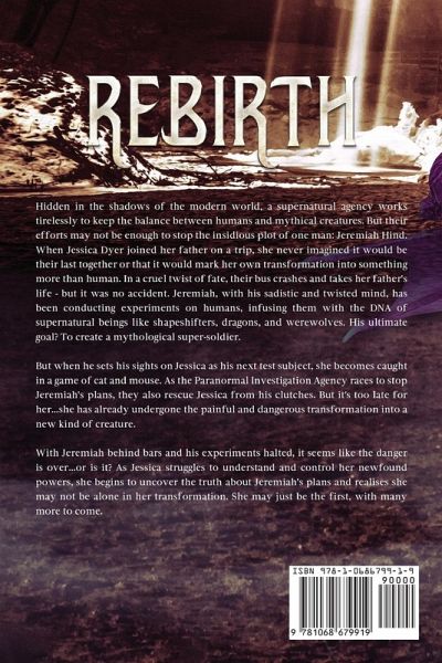 Hidden in the shadows of the modern world, a supernatural agency works tirelessly to keep the balance between humans and mythical creatures. But their efforts may not be enough to stop the insidious plot of one man: Jeremiah Hind.When Jessica Dyer joined her father on a trip, she never imagined it would be their last together or that it would mark her own transformation into something more than human. In a cruel twist of fate, their bus crashes and takes her father's life - but it was no accident. Jeremiah, with his sadistic and twisted mind, has been conducting experiments on humans, infusing them with the DNA of supernatural beings like shapeshifters, dragons, and werewolves. His ultimate goal? To create a mythological super-soldier.But when he sets his sights on Jessica as his next test subject, she becomes caught in a game of cat and mouse. As the Paranormal Investigation Agency races to stop Jeremiah's plans, they also rescue Jessica from his clutches. But it's too late for her...she has already undergone the painful and dangerous transformation into a new kind of creature.With Jeremiah behind bars and his experiments halted, it seems like the danger is over...or is it? As Jessica struggles to understand and control her newfound powers, she begins to uncover the truth about Jeremiah's plans and realises she may not be alone in her transformation. She may just be the first, with many more to come.