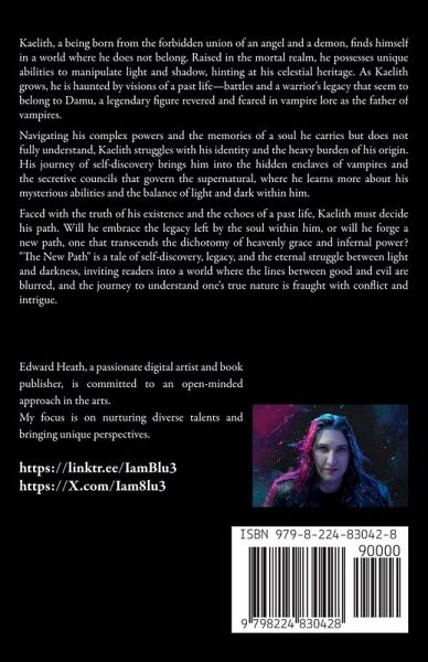 Kaelith, a being born from the forbidden union of an angel and a demon, finds himself in a world where he does not belong. Raised in the mortal realm, he possesses unique abilities to manipulate light and shadow, hinting at his celestial heritage. As Kaelith grows, he is haunted by visions of a past life-battles and a warrior's legacy that seem to belong to Damu, a legendary figure revered and feared in vampire lore as the father of vampires. Navigating his complex powers and the memories of a soul he carries but does not fully understand, Kaelith struggles with his identity and the heavy burden of his origin. His journey of self-discovery brings him into the hidden enclaves of vampires and the secretive councils that govern the supernatural, where he learns more about his mysterious abilities and the balance of light and dark within him. Faced with the truth of his existence and the echoes of a past life, Kaelith must decide his path. Will he embrace the legacy left by the soul within him, or will he forge a new path, one that transcends the dichotomy of heavenly grace and infernal power? "The New Path" is a tale of self-discovery, legacy, and the eternal struggle between light and darkness, inviting readers into a world where the lines between good and evil are blurred, and the journey to understand one's true nature is fraught with conflict and intrigue.