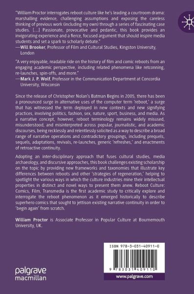 Adopting an inter-disciplinary approach that fuses cultural studies, media archaeology, and discursive approaches, this book challenges existing scholarship on the topic by providing new frameworks and taxonomies that illustratekey differences between reboots and other 'strategies of regeneration,' helping to spotlight the various ways in which the culture industries mine their intellectual properties in distinct and novel ways to present them anew. Reboot Culture: Comics, Film, Transmedia is the first academic study to critically explore and interrogate the reboot phenomenon as it emerged historically to describe superhero comics that sought to jettison existing narrative continuity in order to 'begin again' from scratch.of franchising in the twenty-first century.