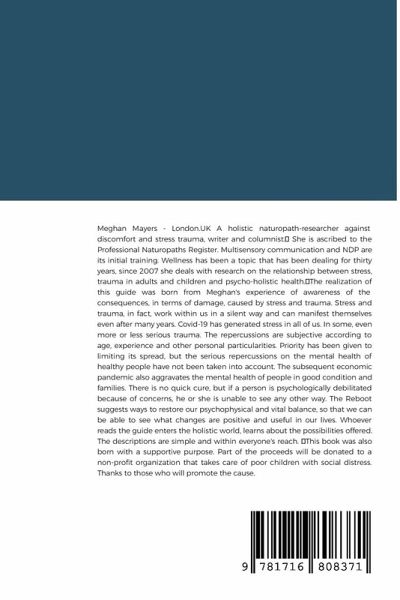 The realization of this guide was born from Meghan's experience of awareness of the consequences, in terms of damage, caused by stress and trauma. Stress and trauma, in fact, work within us in a silent way and can manifest themselves even after many years. Covid-19 has generated stress in all of us. In some, even more or less serious trauma. The repercussions are subjective according to age, experience and other personal particularities. Priority has been given to limiting its spread, but the serious repercussions on the mental health of healthy people have not been taken into account. The subsequent economic pandemic also aggravates the mental health of people in good condition and families. There is no quick cure, but if a person is psychologically debilitated because of concerns, he or she is unable to see any other way. The Reboot suggests ways to restore our psychophysical and vital balance, so that we can be able to see what changes are positive and useful in our lives. Whoever reads the guide enters the holistic world, learns about the possibilities offered. The descriptions are simple and within everyone's reach. This book was also born with a supportive purpose. Part of the proceeds will be donated to a non-profit organization that takes care of poor children with social distress. Thanks to those who will promote the cause.