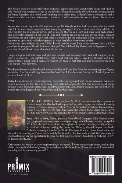 This book is about my personal life story and how I experienced some unbelievable things that I had no idea I would ever experience or see in this lifetime. Things that deeply affected me: the drugs, alcohol, and being homeless in a world that's nothing but a death trap. It doesn't have a conscience, and it doesn't care who you are or where you come from. It will eventually destroy you if you choose not to change. We are lost, wandering souls with nowhere to go. The thought of fear had taken control of my mind, that if I did not change, something bad was going to happen to me. I went from being addicted to believing that life is a special gift to each of us and that we can learn and share with each other. I have personally experienced the love of Jesus, and what he can do in our lives gave me hope, courage, empowerment, and faith to know that there is a purpose for me being here. Most of all, to be able to maintain an open mind with the eagerness to learn that life is what we make of it. Despite my many failures had not I failed I would not be where I am today, once you learn the love Jesus has for you, your life will be forever changed. You will be richly blessed and well-prepared to live your best life, which will be an abundant life forever. I hope and pray that this book will give you strength and encouragement and will energize you to believe in yourself. I am grateful today that I don't look like what I have been through, and I am thankful that I never looked back as to want to go back to that dark and evil world from which by God's grace I was delivered. The chains that once had me bound are now broken, and I am free from the tormenting pain of agony and defeat, free from suffering that once burdened me. I have been set free by the blood of Jesus, the precious Lamb of God. Today, I am a strong and confident person. Keep believing in yourself and the one who sent, made, and created you to know that there is nothing impossible for God to do. And that you can do all things through Christ Jesus, who strengthens you (Philippians 4:13). My dreams and goals are to be who God created me to be. Because I am wonderfully and fearfully made.