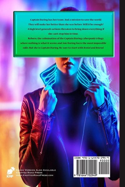 Captain Daring has her team. And a mission to save the world. They will make her better than she was before. Will it be enough? A high level general's actions threaten to bring down everything if she can't stop him in time. Reborn, the culmination of the Captain Daring cyberpunk trilogy, where nothing is what it seems and Joie Daring faces the most impossible odds. But she is Captain Daring. Be sure to start with Revoked and Returned.