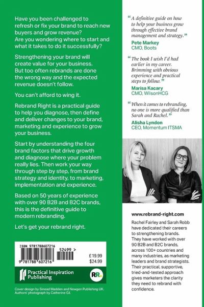 Rachel Fairley and Sarah Robb, co-founders of Rebrand Right, have dedicated their careers to strengthening brands. They have worked with over 90 B2B and B2C brands, across multiple industries, as marketing leaders and brand strategists. Their practical, tried-and-tested approach gives marketers the clarity they need to rebrand with confidence.
