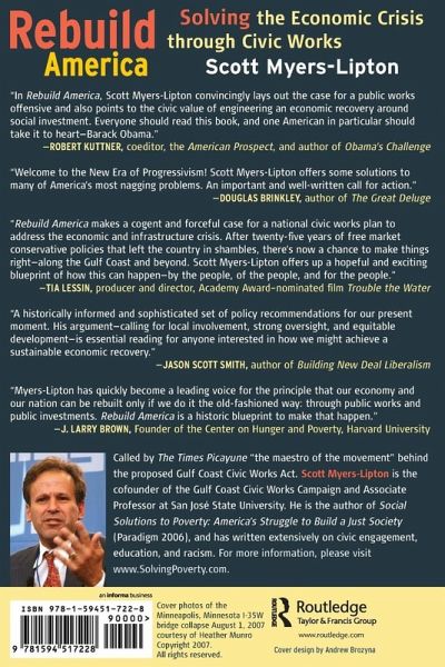 In Obama's America public works is once again a part of the national dialogue. Today it is offered as a solution to the economic downturn and to the public infrastructure crisis. This timely book examines the reasons for the economic crisis facing Main Street, and connects them to why the nation has structurally deficient bridges, weak levees, poorly maintained dams, and dilapidated schools. The book goes on to analyse the history of US public works, updating lessons from the New Deal, to understand the most effective way to organise a modern US civic works project, based on a civic works pilot project for the Gulf Coast. One chapter features new contributions by Howard Zinn, Angela Glover Blackwell, and other leading scholars and thinkers weighing in on how an US civic works project might solve our economic, infrastructure, and environmental crises.