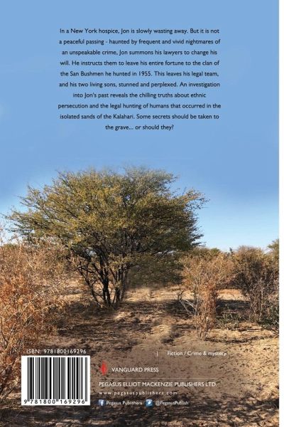 In a New York hospice, Jon is slowly wasting away. But it is not a peaceful passing - haunted by frequent and vivid nightmares of an unspeakable crime, Jon summons his lawyers to change his will. He instructs them to leave his entire fortune to the clan of the San Bushmen he hunted in 1955. This leaves his legal team, and his two living sons, stunned and perplexed. An investigation into Jon's past reveals the chilling truths about ethnic persecution and the legal hunting of humans that occurred in the isolated sands of the Kalahari. Some secrets should be taken to the grave... or should they?