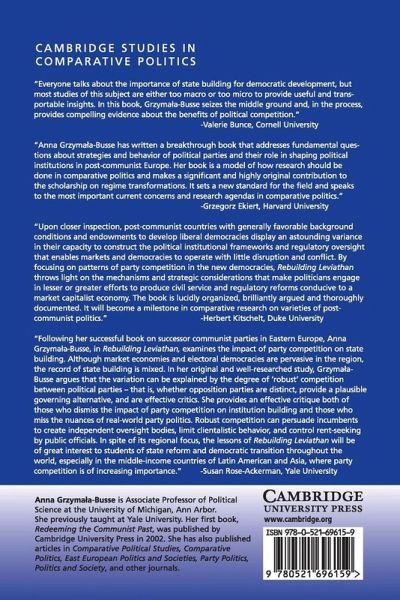 Why do some governing parties limit their opportunistic behaviour and constrain the extraction of private gains from the state? This analysis of post-communist state reconstruction provides surprising answers to this fundamental question of party politics. Across the post-communist democracies, governing parties have opportunistically reconstructed the state - simultaneously exploiting it by extracting state resources and building new institutions that further such extraction. They enfeebled or delayed formal state institutions of monitoring and oversight, established new discretionary structures of state administration, and extracted enormous informal profits from the privatization of the communist economy. By examining how post-communist political parties rebuilt the state in Bulgaria, the Czech Republic, Estonia, Hungary, Latvia, Lithuania, Poland, Slovakia, and Slovenia, Grzymala-Busse explains how even opportunistic political parties will limit their corrupt behaviour and abuse of state resources when faced with strong political competition.