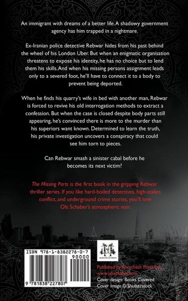 An immigrant with dreams of a better life. A shadowy government agency has him trapped in a nightmare. Ex-Iranian police detective Rebwar hides from his past behind the wheel of his London Uber. But when an enigmatic organization threatens to expose his identity, he has no choice but to lend them his skills. And when his missing persons assignment leads only to a severed foot, he'll have to connect it to a body to prevent being deported. When he finds his quarry's wife in bed with another man, Rebwar is forced to revive his old interrogation methods to extract a confession. But when the case is closed despite body parts still appearing, he's convinced there is more to the murder than his superiors want known. Determined to learn the truth, his private investigation uncovers a conspiracy that could see him torn to pieces. Can Rebwar smash a sinister cabal before he becomes its next victim? The Missing Parts is the first book in the gripping Rebwar thriller series. If you like hard-boiled detectives, high-stakes conflict, and underground crime stories, you'll love Ols Schaber's atmospheric noir.