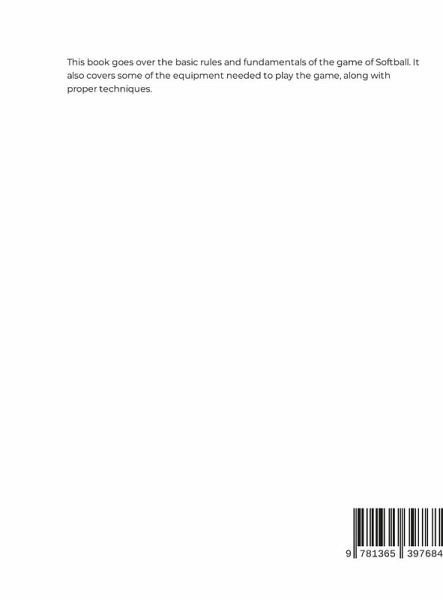 This book covers some of the rules and fundamentals of the game of Softball. Along with some safety guidelines and equipment needed to play.