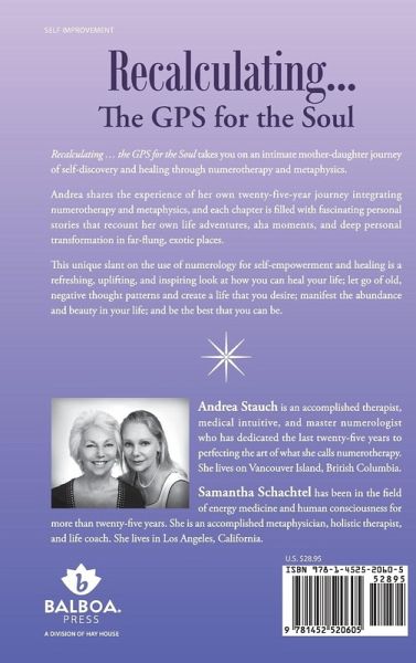 Recalculating … the GPS for the Soul takes you on an intimate mother-daughter journey of self-discovery and healing through numerotherapy and metaphysics. Andrea shares the experience of her own twenty-five-year journey integrating numerotherapy and metaphysics, and each chapter is filled with fascinating personal stories that recount her own life adventures, aha moments, and deep personal transformation in far-flung, exotic places. This unique slant on the use of numerology for self-empowerment and healing is a refreshing, uplifting, and inspiring look at how you can heal your life; let go of old, negative thought patterns and create a life that you desire; manifest the abundance and beauty in your life; and be the best that you can be.