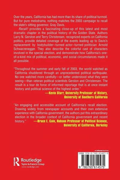 In politics, as in so many other areas, California is unique. The state's economy - the largest in the nation, and sixth largest in the world - is given to dramatic swings. Its legislative system is often defined by gridlock on matters large and small. The use of the initiative, one of the tools of "direct democracy", has become commonplace. Over the years, California has had more than its share of political turmoil. But for pure melodrama, nothing matches the 2003 campaign to recall the state's sitting governor, Gray Davis. Recall! relates the latest and most dramatic chapter in the political history of the Golden State. The authors are recognized experts on California politics and regular local television political analysts. They provide fascinating coverage of the events leading up to Davis's replacement by bodybuilder-turned actor-turned politician Arnold Schwarzenegger; describe the large and colorful cast of characters involved in the special election; and demonstrate how California's one-of-a-kind mix of political, economic, and social circumstances made it all possible.