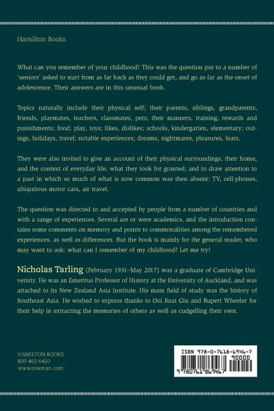 What can you remember of your childhood? This was the question put to a number of 'seniors' asked to start from as far back as they could get, and go as far as the onset of adolescence. Their answers are in this unusual book. Topics naturally include their physical self; their parents, siblings, grandparents, friends, playmates, teachers, classmates, pets; their manners, training, rewards and punishments; food; play, toys; likes, dislikes; schools, kindergarten, elementary; outings, holidays, travel; notable experiences; dreams, nightmares, pleasures, fears. They were also invited to give an account of their physical surroundings, their home, and the context of everyday life, what they took for granted; and to draw attention to a past in which so much of what is now common was then absent: TV, cell-phones, ubiquitous motor cars, air travel. The question was directed to and accepted by people from a number of countries and with a range of experiences. Several are or were academics, and the introduction contains some comments on memory and points to commonalities among the remembered experiences, as well as differences. But the book is mainly for the general reader, who may want to ask: what can I remember of my childhood? - Let me try!