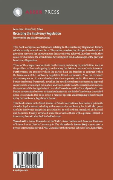 This book comprises contributions relating to the Insolvency Regulation Recast,which recently entered into force. The authors analyse the changes introduced andgive their views on the improvements that are thereby achieved. In other words, theyassess to what extent the amendments have mitigated the disadvantages of the previousInsolvency Regulation.