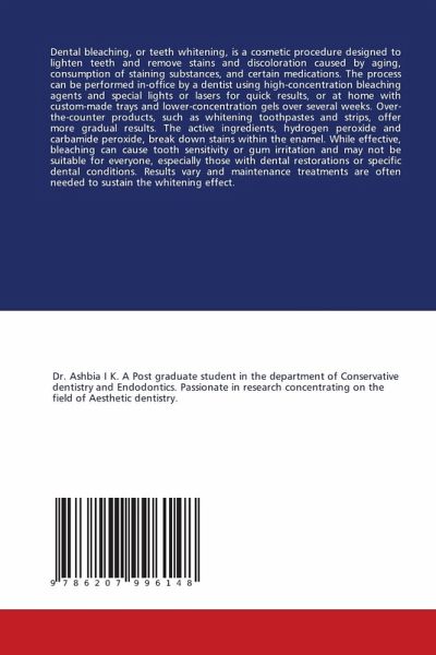 Dental bleaching, or teeth whitening, is a cosmetic procedure designed to lighten teeth and remove stains and discoloration caused by aging, consumption of staining substances, and certain medications. The process can be performed in-office by a dentist using high-concentration bleaching agents and special lights or lasers for quick results, or at home with custom-made trays and lower-concentration gels over several weeks. Over-the-counter products, such as whitening toothpastes and strips, offer more gradual results. The active ingredients, hydrogen peroxide and carbamide peroxide, break down stains within the enamel. While effective, bleaching can cause tooth sensitivity or gum irritation and may not be suitable for everyone, especially those with dental restorations or specific dental conditions. Results vary and maintenance treatments are often needed to sustain the whitening effect.