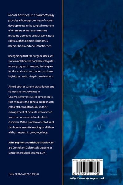 Recent Advances in Coloproctology provides a thorough overview of modern developments in the surgical treatment of disorders of the lower intestine including ulcerative colitis/severe acute colitis, Crohn's disease, carcinomas, haemorrhoids and anal incontinence. Recognizing that the surgeon does not work in isolation, the book also integrates recent progress in imaging techniques for the anal canal and rectum, and highlights medico-legal considerations in separate chapters. Aimed at current practitioners and trainees, Recent Advances in Coloproctology discusses key concepts that will assist general surgeons and colorectal consultants in their management of patients with a broad spectrum of anorectal and colonic disorders. With a problem-oriented slant, this book is essential reading for all those with interest in coloproctology.