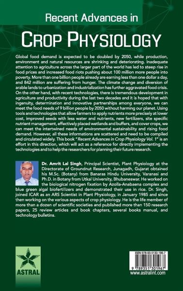 Global food demand is expected to be doubled by 2050, while production, environment and natural resources are shrinking and deteriorating. Inadequate attention to agriculture across the larger part of the world has led to steep rise in food prices and increased food riots pushing about 100 million more people into poverty. More than one billion people already are earning less than one dollar a day, and 842 million are suffering from hunger. The climate change and diversion of arable lands to urbanization and industrialization has further aggravated food crisis. On the other hand, with recent technologies, there is tremendous development in agriculture and productivity during the last two decades and it is hoped that with ingenuity, determination and innovative partnerships among everyone, we can meet the food needs of 9 billion people by 2050 without harming our planet. Using tools and technologies that allow farmers to apply nutrients more precisely at lower cost, improved seeds with less water and nutrients, new fertilizers, site specific nutrient management, effectively placed wetlands and buffers, and cover crops, we can meet the intertwined needs of environmental sustainability and rising food demand. However, all these informations are scattered and need to be compiled and circulated widely. This book "Recent Advances in Crop Physiology Vol. 1" is an effort in this direction, which will act as a reference for directly implementing the technologies and to help the researchers for planning their future research.
