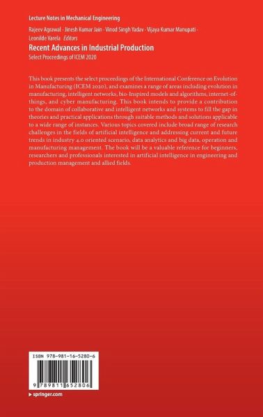 This book presents the select proceedings of the International Conference on Evolution in Manufacturing (ICEM 2020), and examines a range of areas including evolution in manufacturing, intelligent networks, bio-Inspired models and algorithms, internet-of-things, and cyber manufacturing. This book intends to provide a contribution to the domain of collaborative and intelligent networks and systems to fill the gap in theories and practical applications through suitable methods and solutions applicable to a wide range of instances. Various topics covered include broad range of research challenges in the fields of artificial intelligence and addressing current and future trends in industry 4.0 oriented scenario, data analytics and big data, operation and manufacturing management. The book will be a valuable reference for beginners, researchers and professionals interested in artificial intelligence in engineering and production management and allied fields.