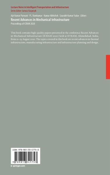 This book contains high-quality papers presented in the conference Recent Advances in Mechanical Infrastructure (ICRAM 2020) held at IITRAM, Ahmedabad, India, from 21-23 August 2020. The topics covered in this book are recent advances in thermal infrastructure, manufacturing infrastructure and infrastructure planning and design.
