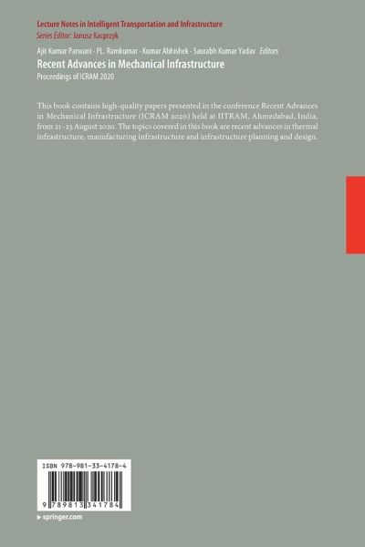This book contains high-quality papers presented in the conference Recent Advances in Mechanical Infrastructure (ICRAM 2020) held at IITRAM, Ahmedabad, India, from 21-23 August 2020. The topics covered in this book are recent advances in thermal infrastructure, manufacturing infrastructure and infrastructure planning and design.