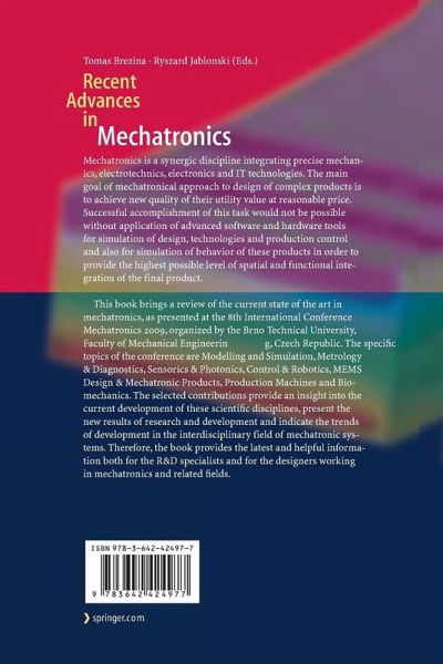 This book brings a review of the current state of the art in mechatronics, as presented at the 8th International Conference Mechatronics 2009, organized by the Brno Technical University, Faculty of Mechanical Engineering, Czech Republic. The specific topics of the conference are Modelling and Simulation, Metrology & Diagnostics, Sensorics & Photonics, Control & Robotics, MEMS Design & Mechatronic Products, Production Machines and Biomechanics. The selected contributions provide an insight into the current development of these scientific disciplines, present the new results of research and development and indicate the trends of development in the interdisciplinary field of mechatronic systems. Therefore, the book provides the latest and helpful information both for the R&D specialists and for the designers working in mechatronics and related fields.